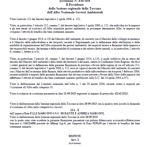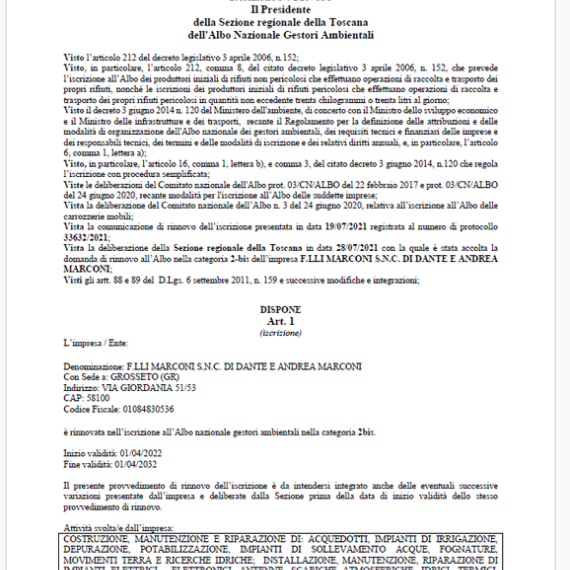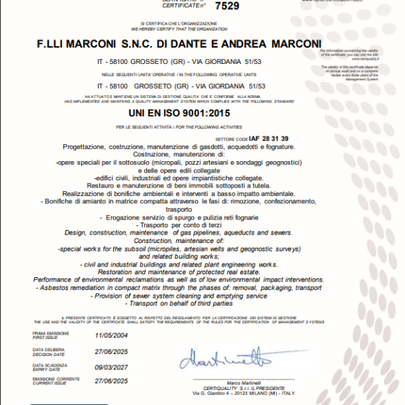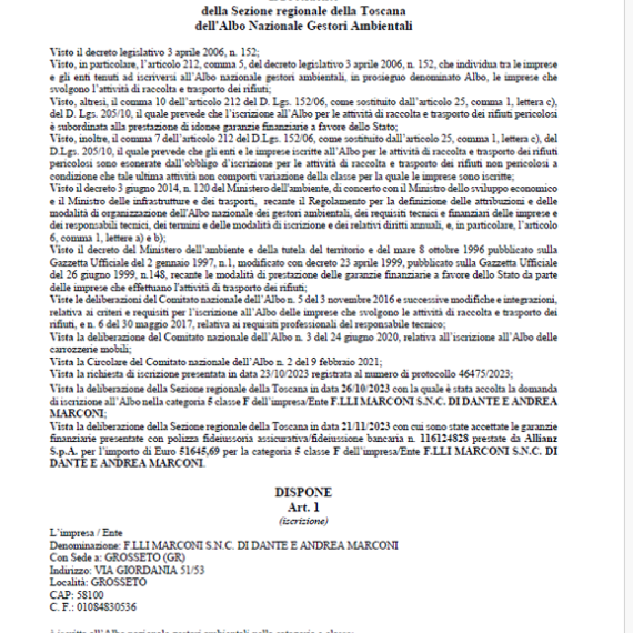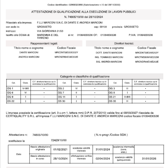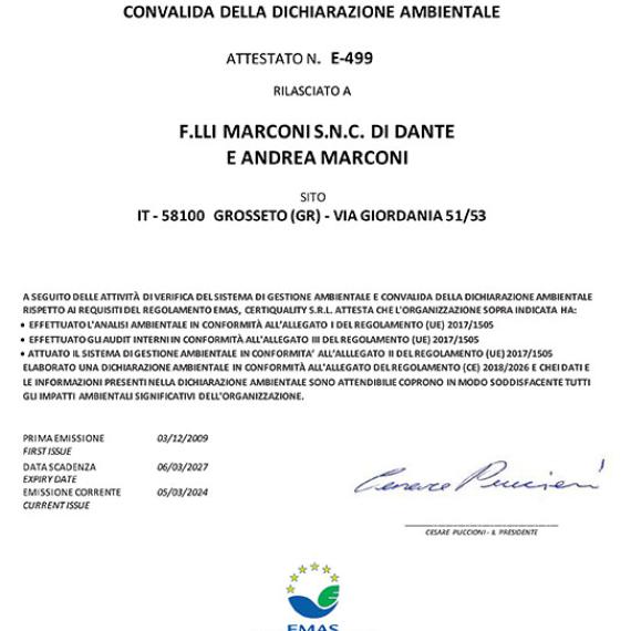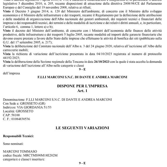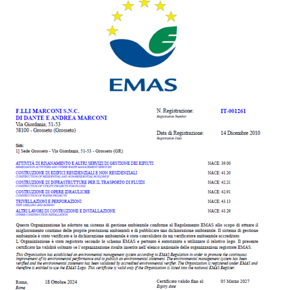 SOA ISO 9001 ISO 14001 EMAS E-499_Convalida D Ambientale Dichiarazione ambientale Iso 45001 sc 09032024-1 SA8000:2014 UNI/PDR 125:2022 UNI ISO 37001:2016 UNI ISO 39001:2016 UNI EN ISO 3834-3:2006 EN 1090-1:2009 + A1:2011 Attestato idoneità autotrasportatori ALBO GESTORI AMBIENTALI CAT. 2 BIS Albo Gestori Ambientali cat.4 E ALBO GESTORI AMBIENTALI CAT. 5 F Albo Gestori Ambientali cat.9 E ALBO GESTORI AMBIENTALI CAT. 10A-E