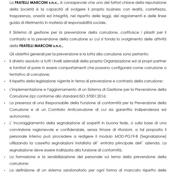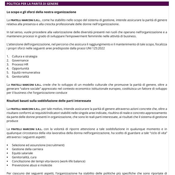 Politica per la Responsabilità Sociale Politica per la parità di genere Politica prevenzione corruzione