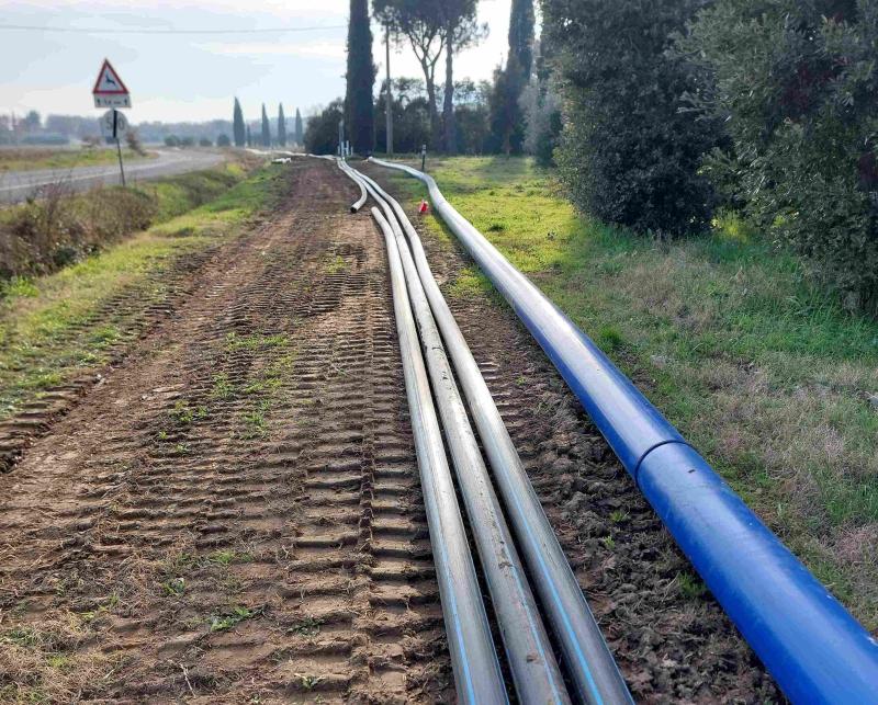 L’intervento ha riguardato la bonifica di un tratto di circa 4,7 km di condotta idrica lungo la S.P. 43 Macchiascandona, mediante la posa di una nuova tubazione in PEAD, finalizzata all’ammodernamento e al miglioramento dell’affidabilità della rete. La nuova condotta è stata realizzata per fasi successive lungo la banchina stradale, con installazione temporanea di bypass per garantire la continuità del servizio idrico durante l’esecuzione dei lavori. L’intervento ha previsto operazioni puntuali di rimozione e smaltimento di tratti di tubazione in cemento-amianto, con squadre specializzate e nel rispetto della normativa vigente.