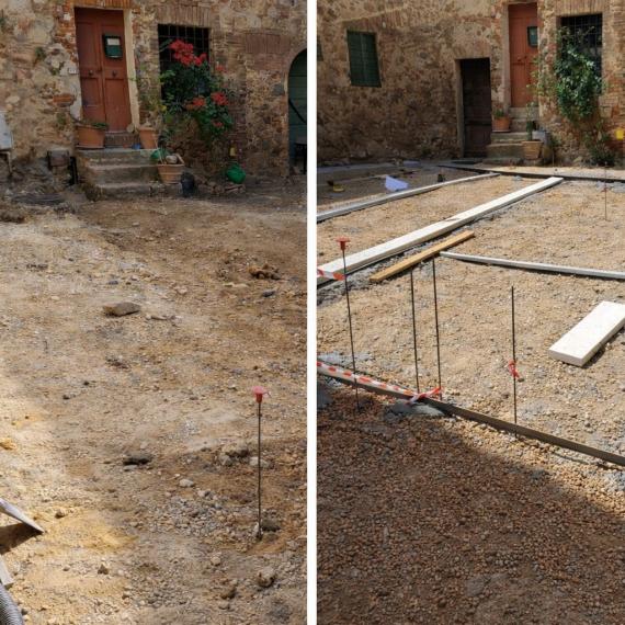 L’intervento ha riguardato la riqualificazione degli spazi pubblici del borgo storico di Torri, con particolare riferimento alla piccola piazza adiacente a quella principale. Il lavoro ha previsto il completo ridisegno delle pavimentazioni, mediante l’utilizzo di un sistema architettonico in ghiaia a vista, scelti per coerenza materica e cromatica con il contesto storico. La nuova configurazione restituisce ordine e qualità agli spazi, valorizzando la vocazione originaria del borgo come luogo di incontro e socialità. Un’opera di valorizzazione che coniuga rispetto della memoria storica, qualità architettonica e miglioramento della fruibilità degli spazi pubblici.