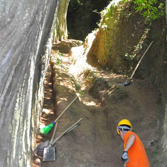 L’intervento ha riguardato il recupero e la messa in sicurezza di alcune Vie Cave etrusche nei territori di Pitigliano e Sorano, con opere finalizzate alla valorizzazione e alla piena fruibilità dei percorsi storico-naturalistici. Le lavorazioni hanno previsto interventi di pulizia straordinaria dei tracciati mediante taglio della vegetazione infestante, rimozione di detriti e ostacoli, consolidamento dei punti maggiormente deteriorati e sistemazione delle superfici pedonali. Particolare attenzione è stata dedicata alla sicurezza dei percorsi e alla tutela delle pareti tufacee. L’intervento ha consentito il recupero funzionale di tratti di elevato valore storico e paesaggistico, restituendo accessibilità e decoro a un sistema di collegamenti di origine etrusca di rilevante interesse culturale e turistico.