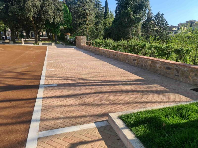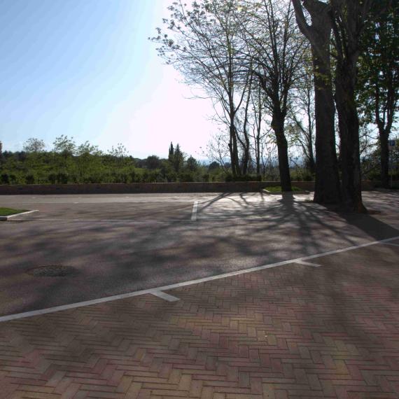 L’intervento ha riguardato la riqualificazione complessiva di un’area adibita a parcheggio pubblico, con l’obiettivo di migliorarne funzionalità, sicurezza e integrazione con il contesto urbano circostante. Le opere hanno previsto la riorganizzazione degli stalli e degli spazi verdi, la realizzazione ex novo della rete di smaltimento delle acque meteoriche (fognatura bianca) e l’adeguamento delle pendenze e delle quote per una corretta regimazione delle acque. Sono state inoltre eseguite opere murarie in pietra e la posa di pavimentazioni in asfalto architettonico colorato, soluzione che ha consentito di qualificare esteticamente l’area mantenendo al contempo elevate prestazioni tecniche e durabilità. Un intervento che ha trasformato uno spazio precedentemente degradato in un’area ordinata, efficiente e pienamente fruibile dalla collettività.